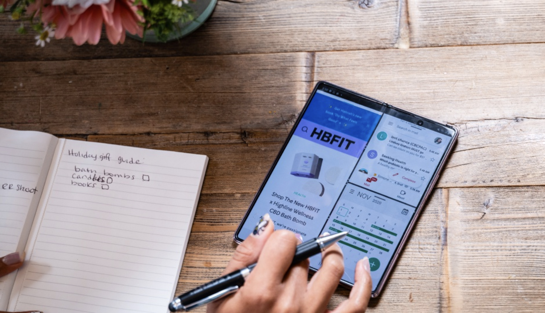 “In the past, I haven’t used my phone to follow workouts because the screen was so small; instead, I used my computer,” she says. “Now, I use my new Z Fold2.”