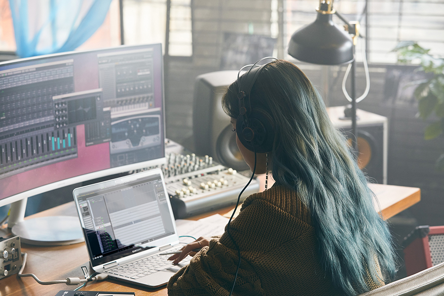 Switching from type to touch is simple with the 360-degree touchscreen, a feature that Heize found particularly helpful. “The S Pen was very useful when I was writing the lyrics,” she said. “Also, when I am composing music with the software, the combination of the touch screen and the S Pen made it convenient, especially when doing work that required detail.”