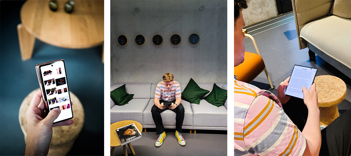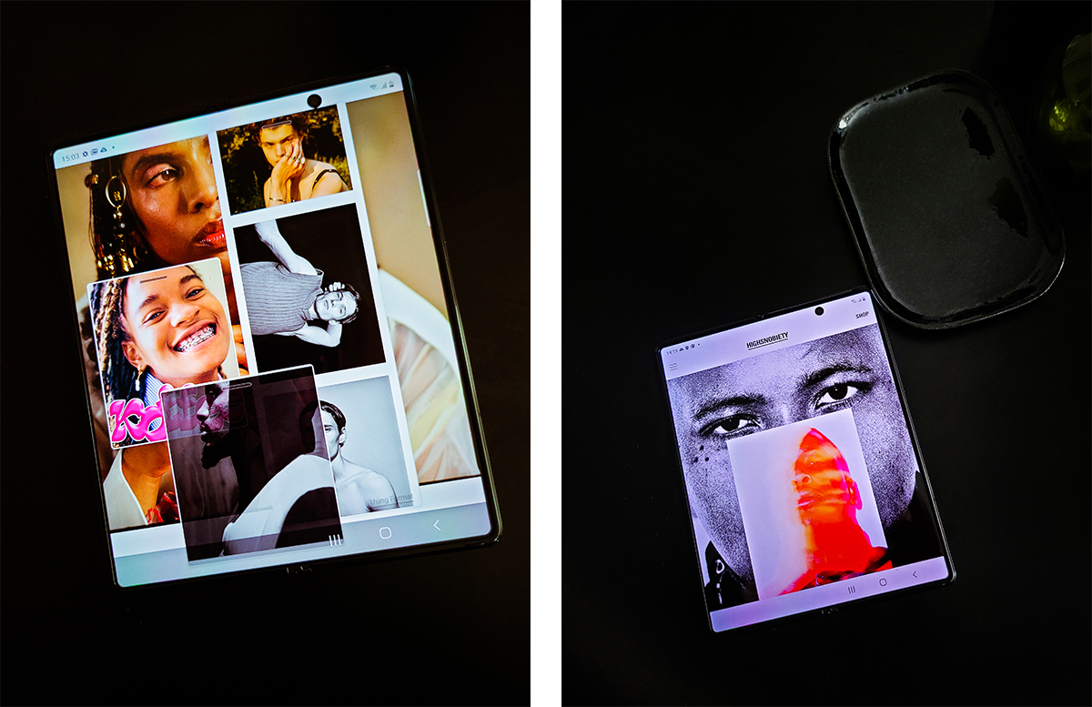 “A huge part of my day is finding visual references and photography to create moodboards for upcoming Highsnobiety shoots, so the Galaxy Z Fold2 5G’s multi-active window display has totally changed the game for me. Essentially it acts as a mini moodboard in my pocket where I can look at loads of different images all on the one large screen and overlay them just as I would when making a moodboard. My fave feature is the fade functionality that allows you to overlay images and easily drag and drop them on top of one another for a really creative feel that I’ve never been able to achieve on a phone before. I also love the big screen for viewing mood images and finding inspiration.”