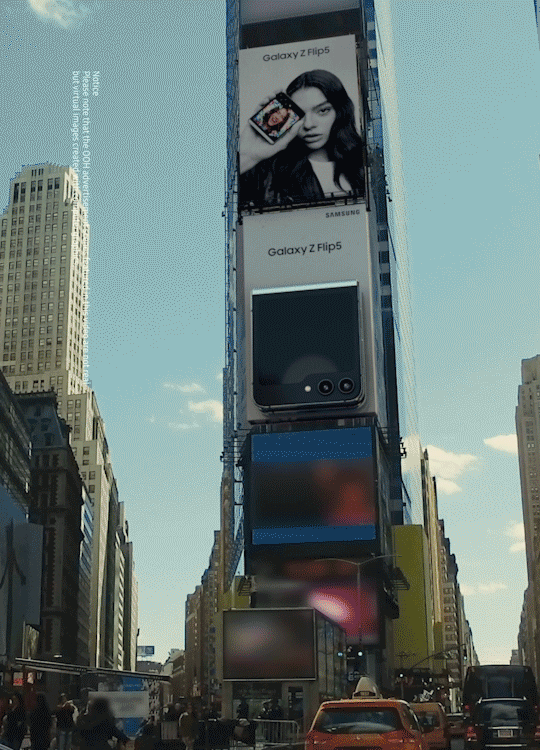 Galaxy Z Flip5 takes pride of place on the iconic One Times Square building in New York City as traffic passes by below