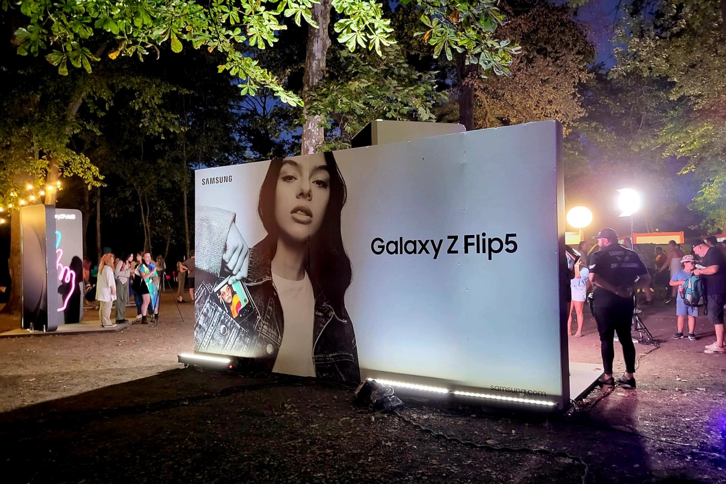 At the 2023 Summer Well music festival in Romania, visitors tested out Galaxy Z Flip5's versatile camera and Galaxy Z Fold5's gaming and multitasking features, as well as seeing photographs of themselves split across four creatively arranged LED screens in the “Show your flip side” corner.