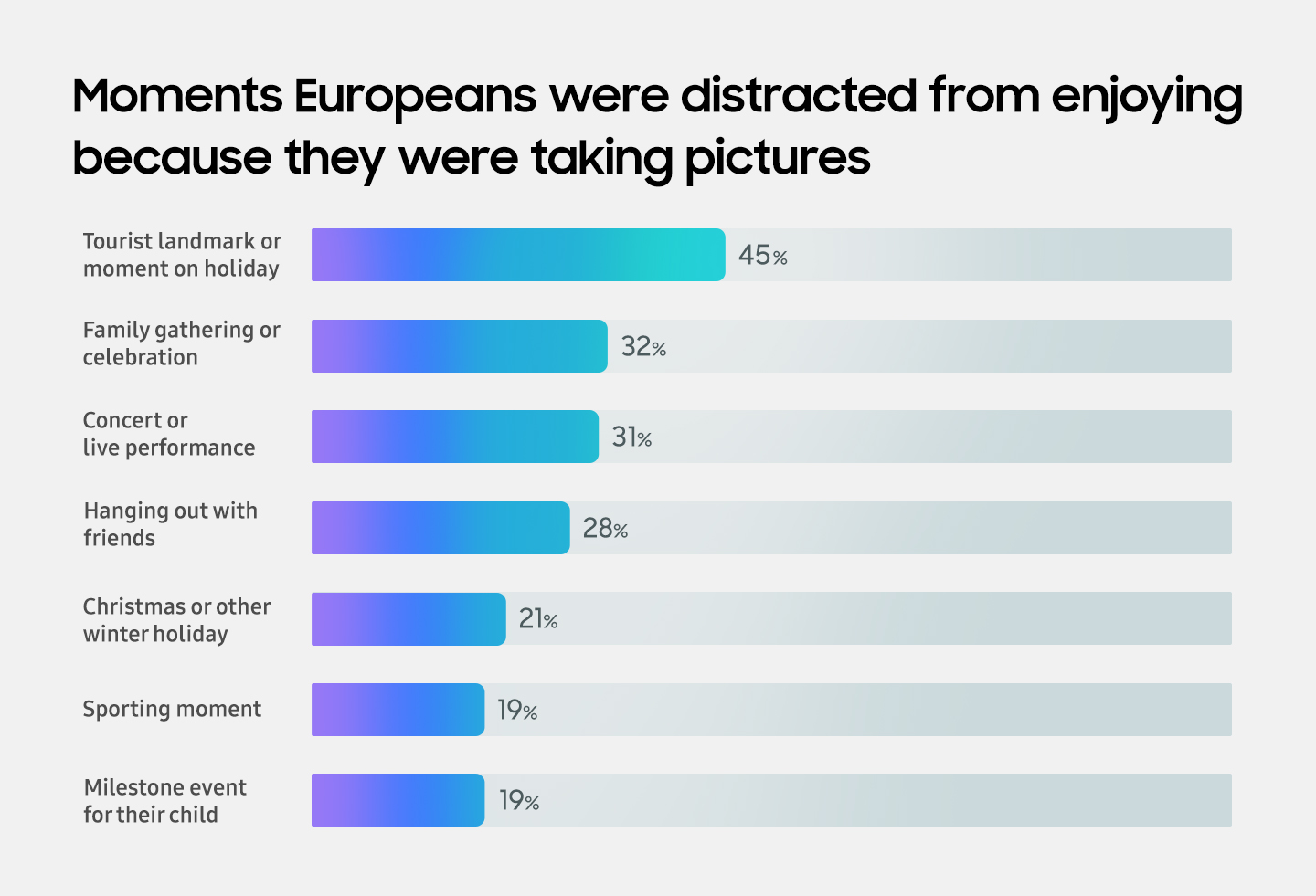 Key moments people say they’ve missed because they were busy taking photos include family celebrations, tourist landmarks and even milestones in their children’s lives: